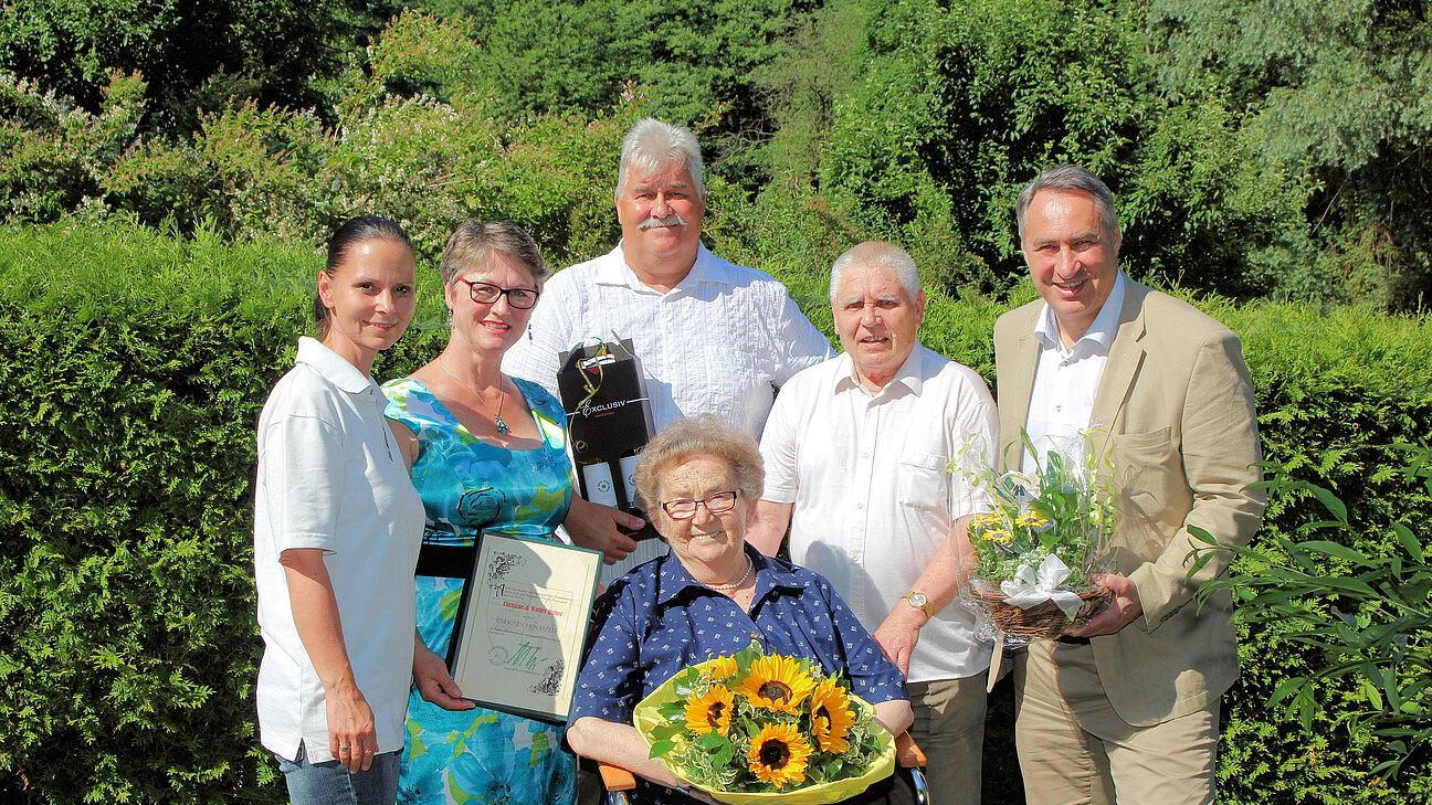65 gemeinsame Jahre hat das Ehepaar Walter schon miteinander verbracht. Nun feierten Christine und Huber Walter aus der Stadtgemeinde Pressbaum ihre eiserne Hochzeit. Bürgermeister Josef Schmidl-Haberleitner, Vbgm. Irene Wallner-Hofhansl und Vbgm. Alfred Gruber gratulierten den beiden im Namen der Stadtgemeinde Pressbaum zu diesem besonderen Jubiläum.