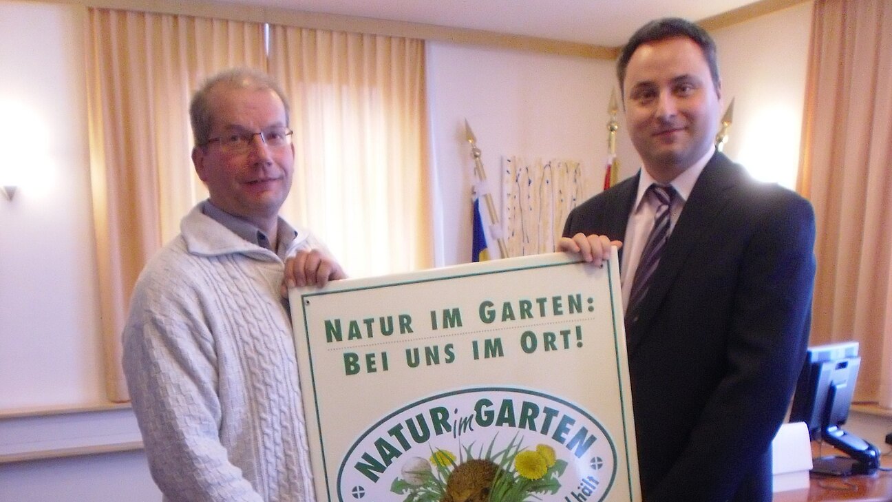 Bürgermeister Ing. Michael Cech freute sich besonders über die Tafel „Natur im Garten – bei