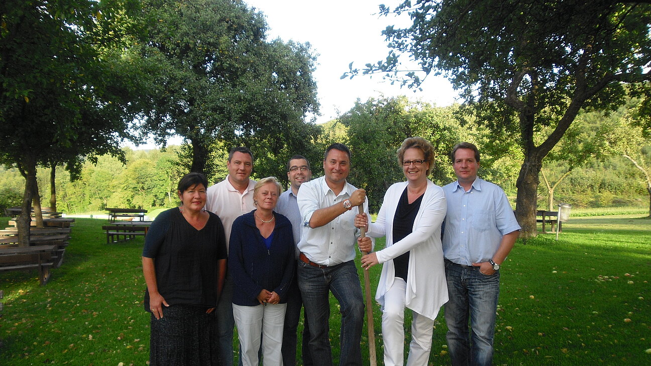 Bürgermeister und GemeindevertreterInnen gemeinsam mit den jungen Familien diesen