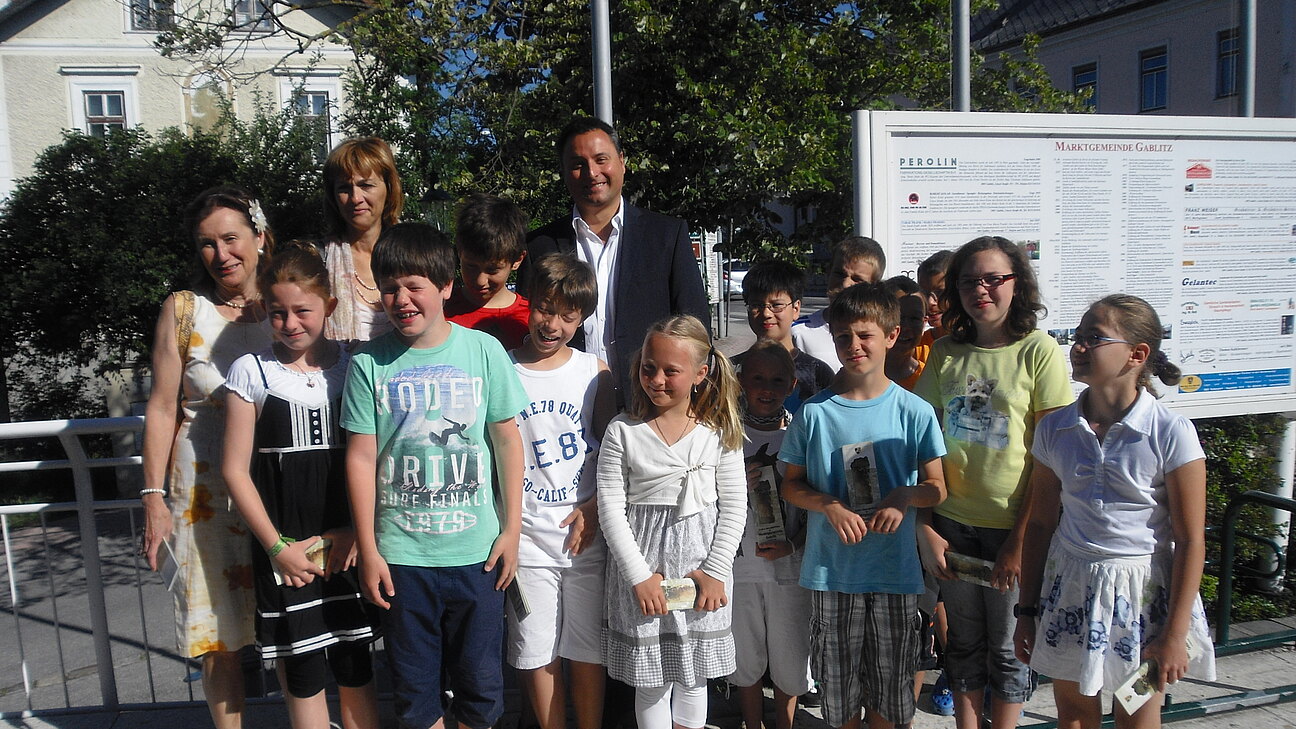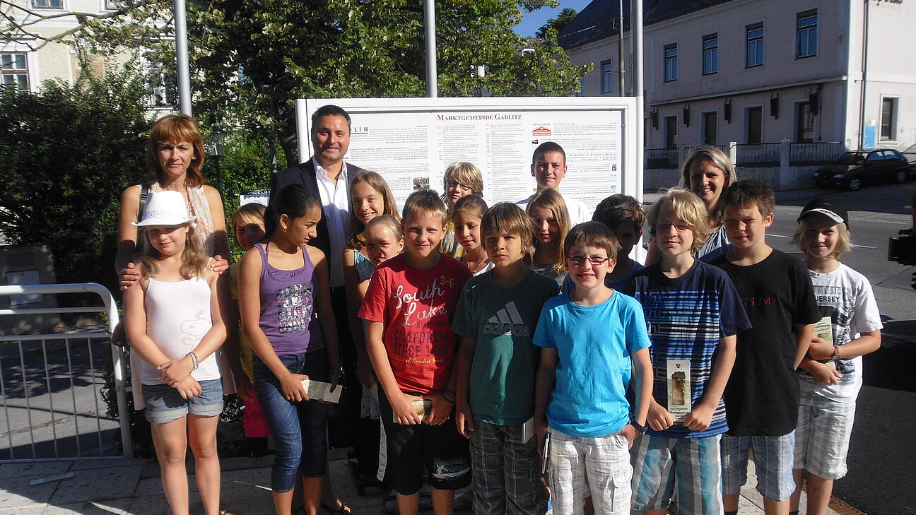 Bürgermeister Michael Cech die beiden 4. Klassen am 29. Juni in das Gablitzer