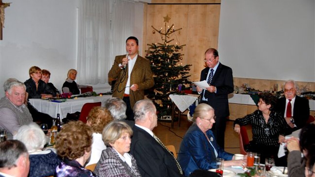 Im mehr als vollen Pfarrheim fand die alljährliche stimmungsvolle Weihnachtsfeier unserer Seniorinnen und Senioren, durch die Obmann Fritz Warholek und Inge Ehrengruber führten, statt. Nach den Grußworten durch Bürgermeister Cech und Bezirksobmann Pöchleitner ehrten wir langjährige Mitglieder und ließen unsere Dezember-Geburtstagskinder hoch leben. Weiters gab es eine von Wilfried Modl erstellte Video-Präsentation "Rückblick 2010", die unsere umfangreichen Aktivitäten eindrucksvoll zeigte, sowie lustige Gedichte von Hansi Schuster in Zusammenwirken mit ihrer Mutter Paula Schober und ihrem Mann Wolfgang. Was da bei uns so alles passieren kann...