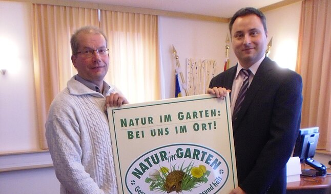 Bürgermeister Ing. Michael Cech freute sich besonders über die Tafel „Natur im Garten – bei